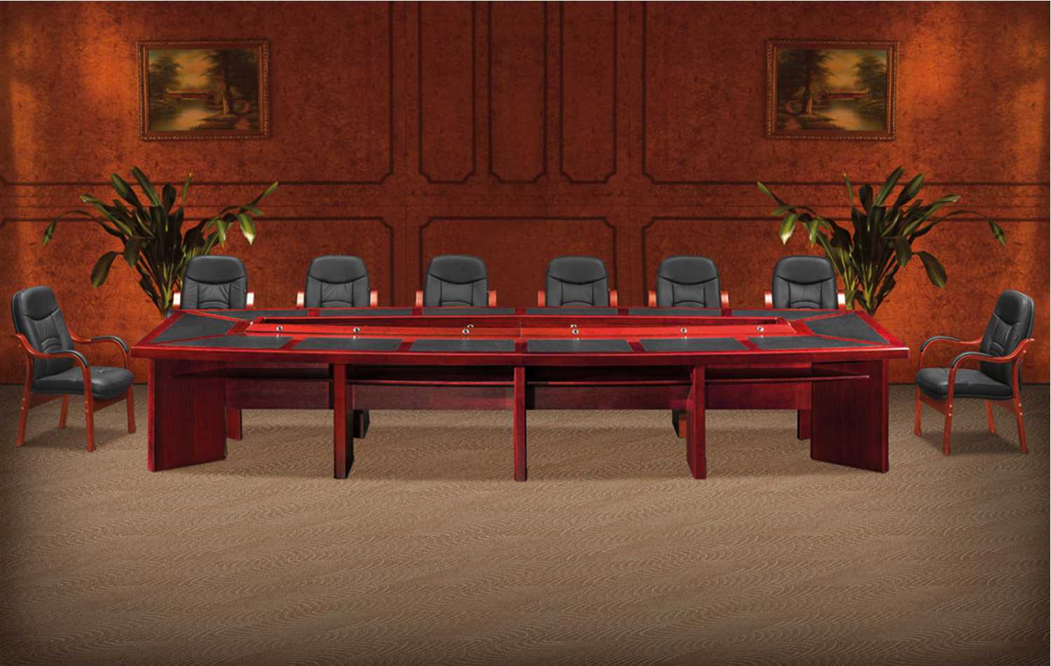 The modular boardroom table is made mahogany veneer and has an 80mm thick top. Create your boardroom table according to your room size by simply combining different size of extension tables with corner tables. Seating undetermined