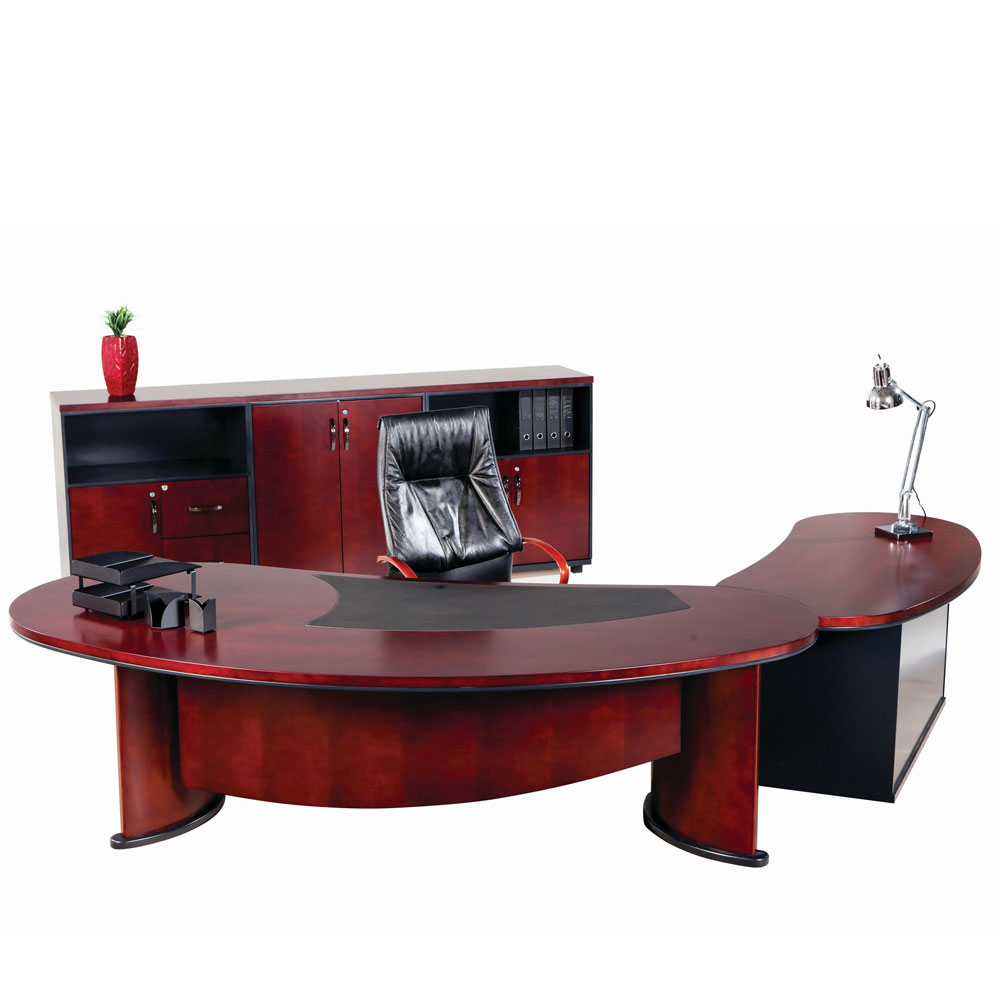 Veneer 32 x 2mm flat solid edge top with anthracite backer & curved laminated modesty panel, curved 50mm legs.