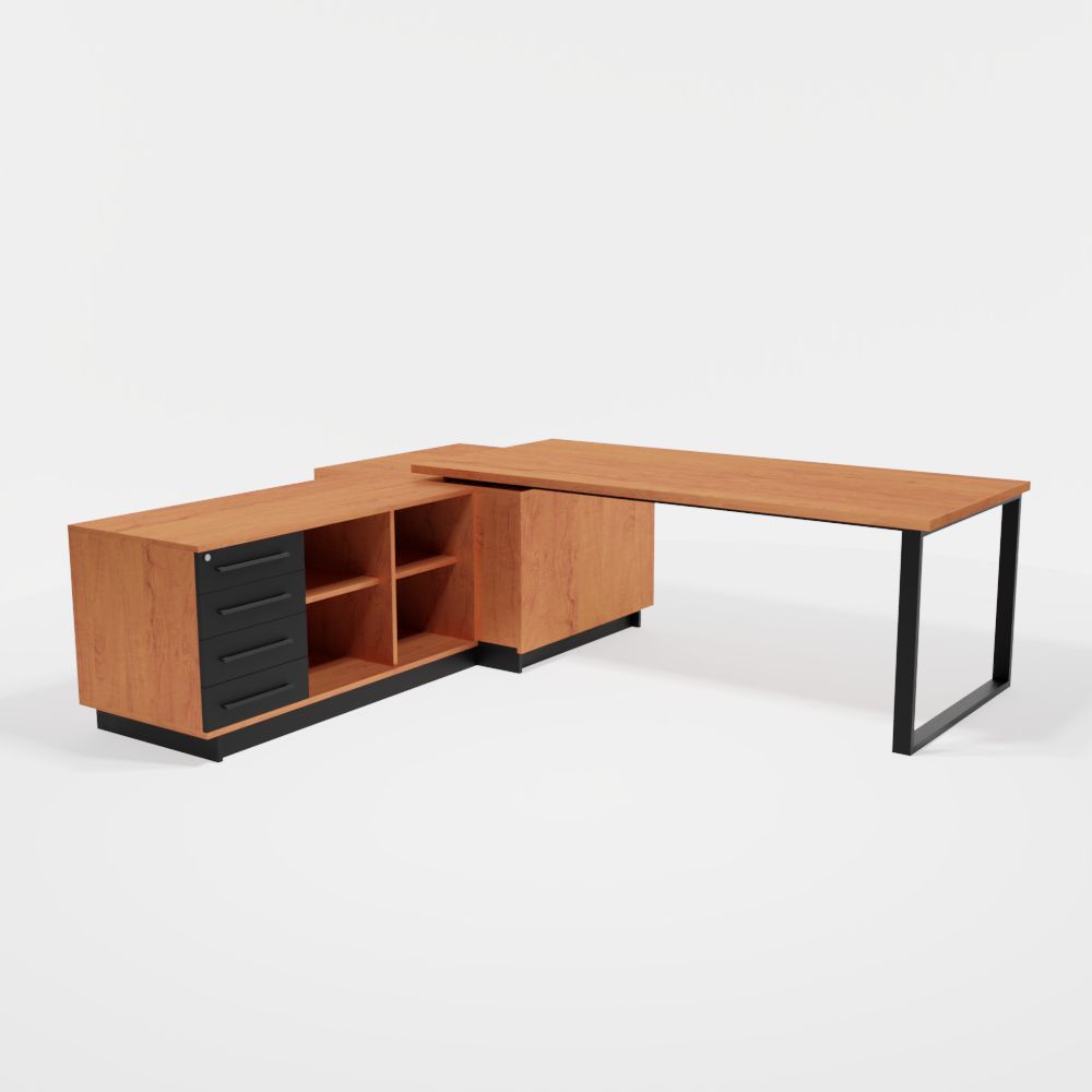 Size: 2000 x 900 Credenza: 2200 x 600 38 x 38 Steel underframe and steel leg 32mm Melamine Tops