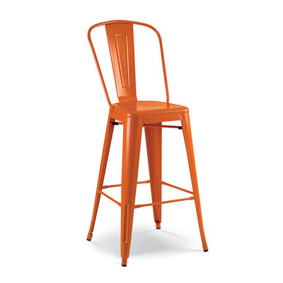 Industrial style barstool with back of entirely steel construction. Epoxy coated locally in a multitude of colours.