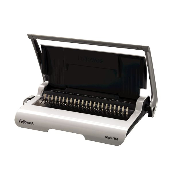“Light duty comb binding machine for the small office Manually punches up to 15 sheets at a time Binds up to 150 sheets with a 19mm comb size Allows user to punch & bind continuously for maximum productivity Loads vertically for accurate punch alignment A