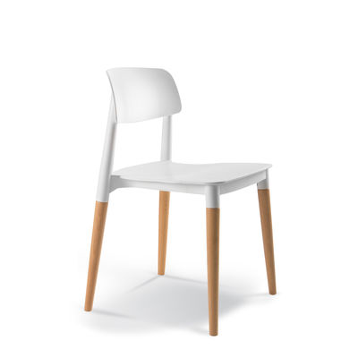 Polyprop shell on solid Beech legs. Natural finish is standard. Darker stains options.