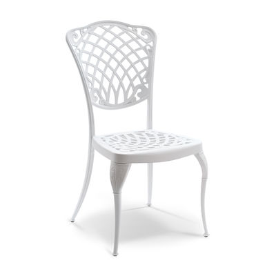 Solid cast aluminium finished with exterior powder coating. Suitable for continuous outdoor use in all conditions including extreme coastal and high corrosion areas. Heavy enough to withstand windy areas. Stackable up to 6.
