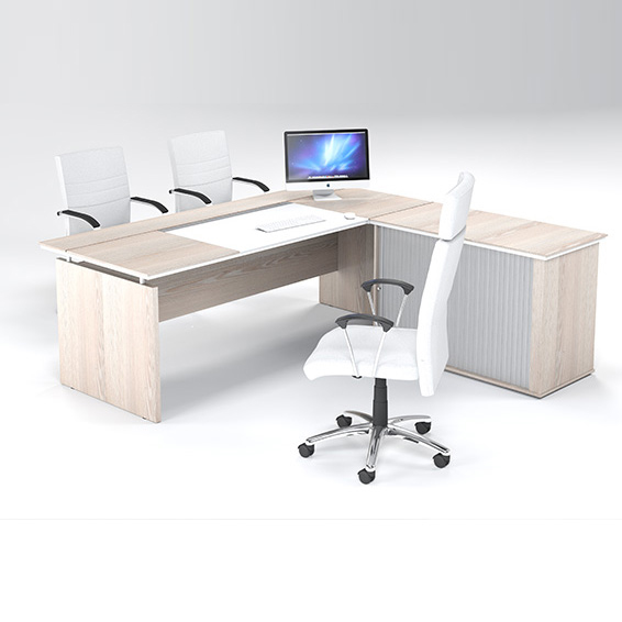 Desk with Inlay and L-Extension, Black Roller Door Pedenza, Conference End