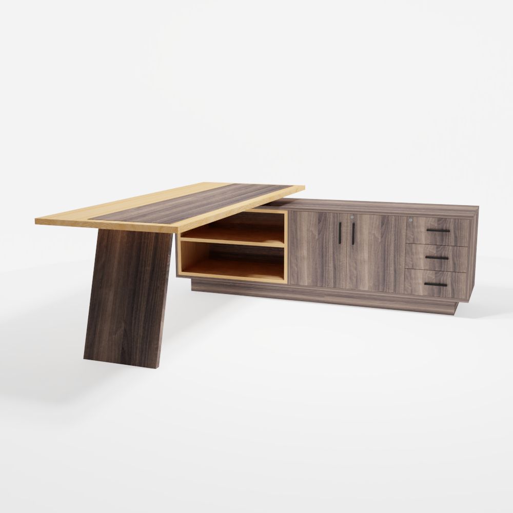 2000w x 900 Executive Desk 32mm Melamine Top including a 38 x38mm Steel Underframe 1800w x 500d Pedenza Consisting of Lockable Pedestal, Hinge Door Cupboard, Open CPU consol and Front Open Shelf Unit Standard in 2 Melamine Colour Combination. Colour options on Request