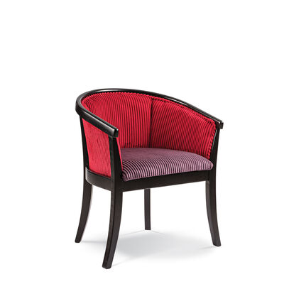 Stackable gas injection polyprop monobloc suitable for indoor and outdoor use. Subtle woodgrain effect incorporated into the moulding. Upholstered seat panel optional