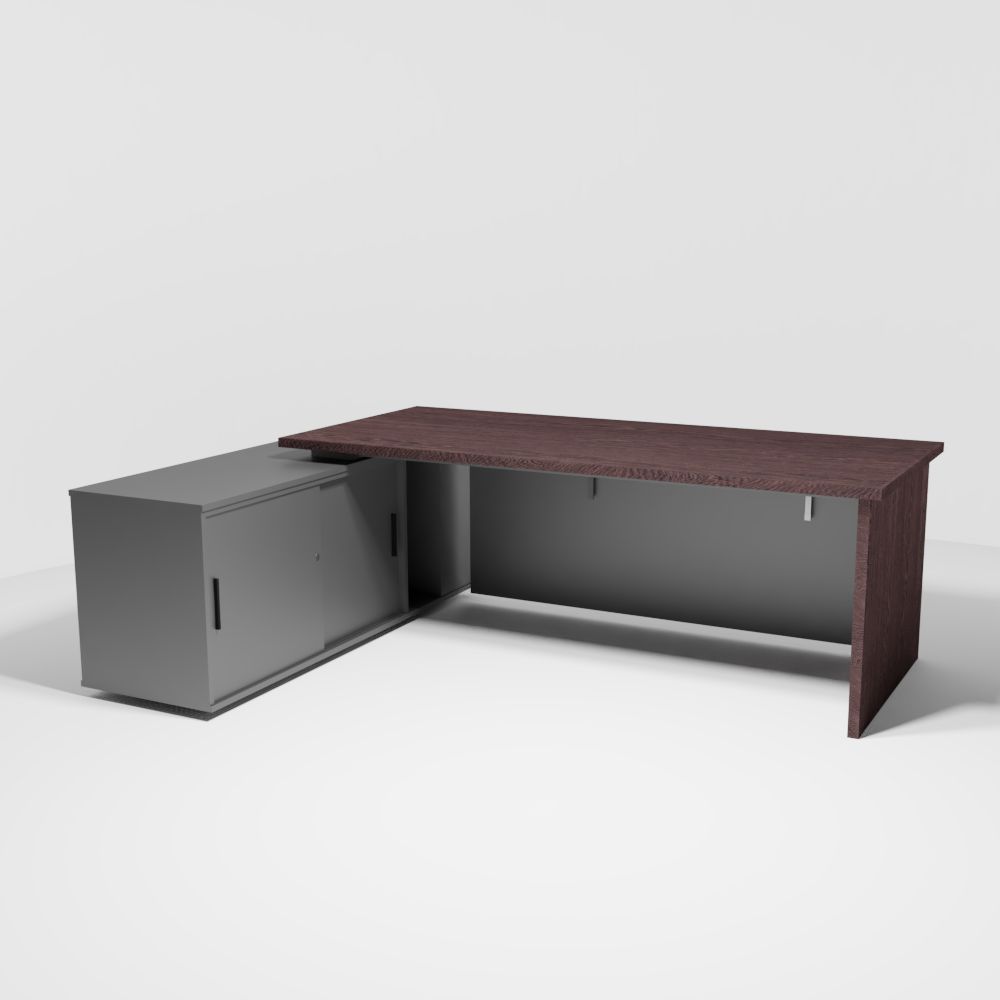 2000w x 900 Executive Desk 32mm Melamine Top including a 38 x38mm Steel Underframe 1800w x 500d Pedenza Consisting of Lockable Pedestal, Hinge Door Cupboard, Open CPU consol and Front Open Shelf Unit Standard in 2 Melamine Colour Combination. Colour options on Request
