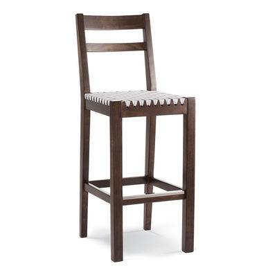 Industrial style comprising steel frame and backrest with chunky timber seat. Suitable for full bar height only.